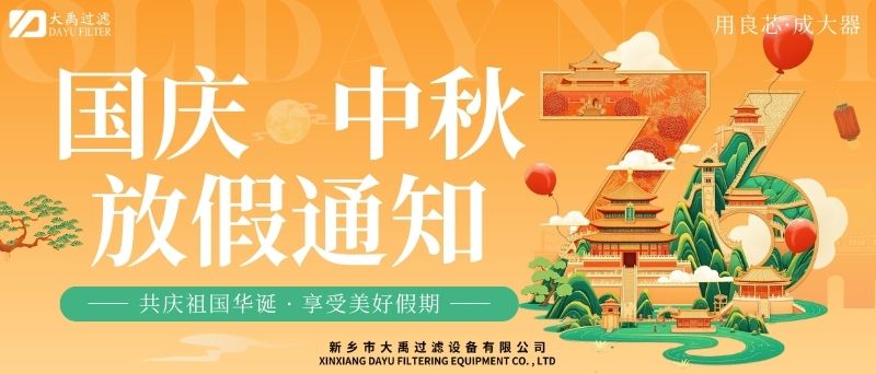 尊敬的客戶及合作伙伴:秋風(fēng)送爽,丹桂飄香。值此國慶與中秋雙節(jié)來臨之際,謹(jǐn)向您及家人致以zui誠摯的節(jié)日祝福!根據(jù)國家法定節(jié)假日安排,結(jié)合公司實際情況,現(xiàn)將2025年國慶+中秋雙節(jié)放假安排及相關(guān)事項通知如下:一、放假時間2025年10月1日(星期三)至10月6日(星期一),共計6天。10月7日(星期二)起正常上班。9月28日(周日)、10月12日(周日)補(bǔ)班。二、業(yè)務(wù)服務(wù)說明放假期間,公司線上咨詢通道保持暢通。銷售人員將不定期查看并回復(fù)您的咨詢,但受假期影響,可能存在回復(fù)延遲的情況,敬請諒解。如遇緊急事項,您可撥打以下熱線:王經(jīng)理13613905650;李經(jīng)理13839073363,我們將竭誠為您服務(wù)。三、生產(chǎn)安排提醒因車間節(jié)前生產(chǎn)訂單已排滿,為確保假期前后生產(chǎn)質(zhì)量與效率,放假期間(10月1日至10月6日)將暫停安排新生產(chǎn)訂單生產(chǎn)。節(jié)前已下單的訂單將按原計劃正常推進(jìn),放假期間新接訂單將統(tǒng)一順延至10月7日復(fù)工后,按序安排生產(chǎn)。由此帶來的不便,我們深表歉意,感謝您的理解與支持。四、溫馨提示假期出行請注意安全,做好個人防護(hù)。公司官網(wǎng)及社交媒體平臺將持續(xù)更新節(jié)日動態(tài)及服務(wù)資訊,歡迎隨時關(guān)注。佳節(jié)共團(tuán)圓,服務(wù)不間斷。值此雙節(jié)同慶的美好時刻,衷心感謝您長期以來對我司的信任與支持!我們期待在節(jié)后以更飽滿的熱情、更優(yōu).質(zhì)的服務(wù)與您攜手同行,共啟新程!此致敬禮!新鄉(xiāng)市大禹過濾設(shè)備有限公司2025年9月28日